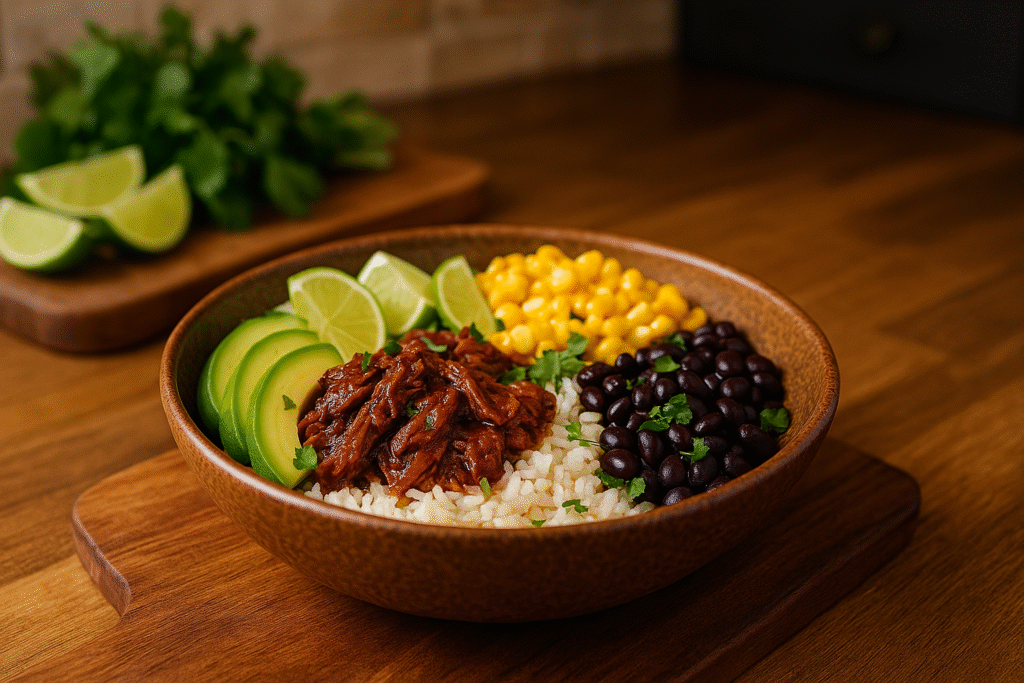 A rich, comforting bowl inspired by traditional birria tacos—tender meat (or plant-based alternative), fragrant broth, warm spices, and all your